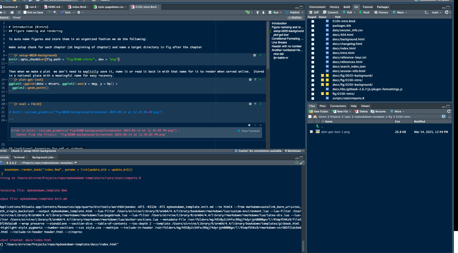 - make setup chunk for each chapter (at beginning of chapter)