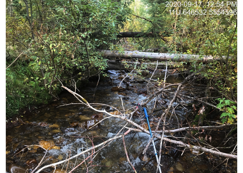 At the crossing location, the stream is 4th order with a watershed area upstream of the road of approximately 17km2. The elevation of the watershed ranges from a maximum of 2900 to 1400m at the culvert. Upstream of the crossing, there are no anthropogenic barriers on the mainstem. Although there are two modelled crossings on small tributaries that enter the stream approximately 1.5km upstream of the road, machinery operators encountered onsite indicated that they had been removed during road deactivation. No fisheries information was available for the stream (MoE 2020d) however westslope cutthroat trout, bull trout, mountain whitefish, brook trout, longnose sucker and longnose dace (among other species) have been recorded downstream in the Elk River (MoE 2020b).
