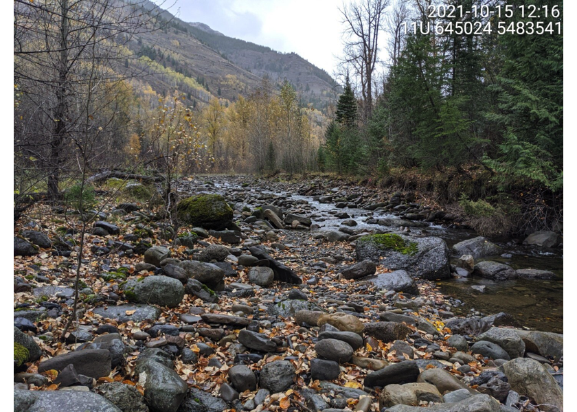 Hughes and Millions (2020) report that riprap to stabilize the streambanks and reduce meandering is frequently employed near existing and historical infrastructure on Coal Creek. Elk River Alliance have drafted a plan to restore the floodpain adjacent to the historic township through removal of invasive species and planting/seeding of native vegetation (Hughes and Millions 2020). A major storm event on November 14-15, 2021 caused extensive damage to Coal Creek Road and changed the course of the river near the historic townsite (Tibballs 2021). This event may have washed out this crossing since the confirmation was completed.