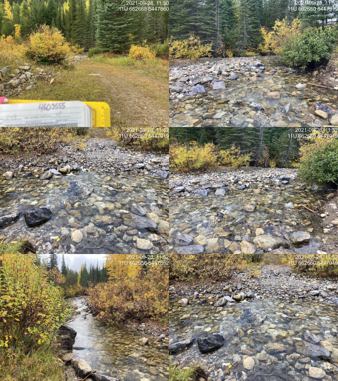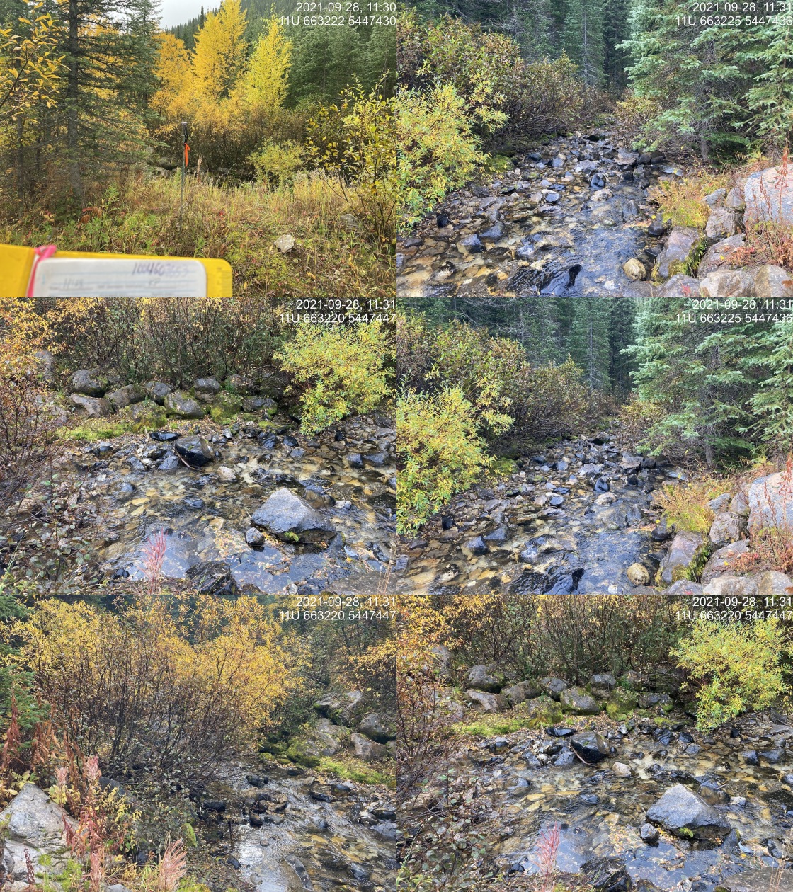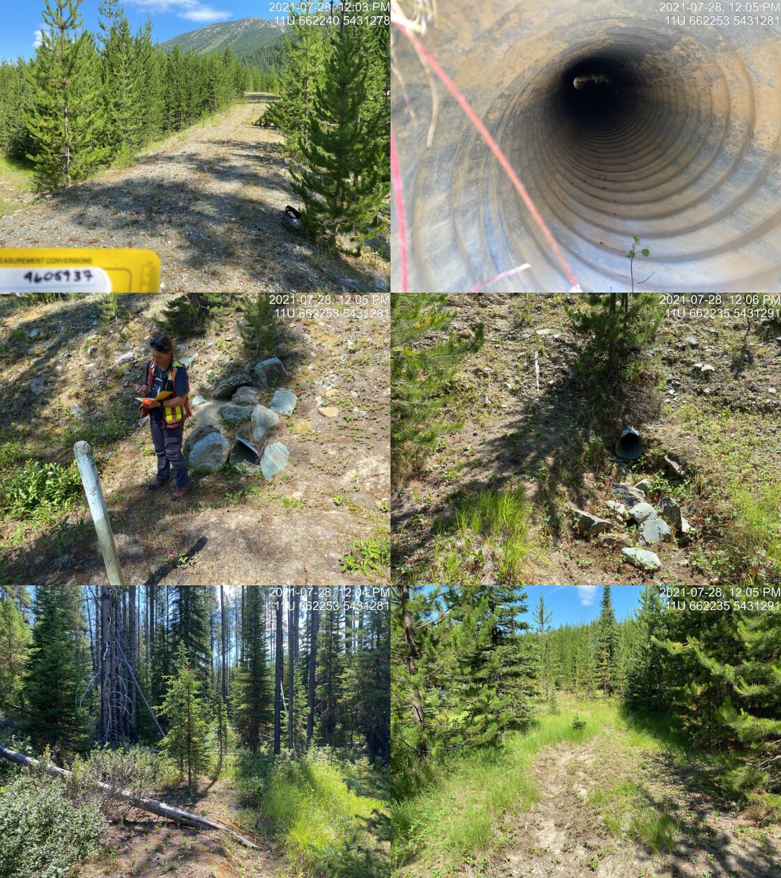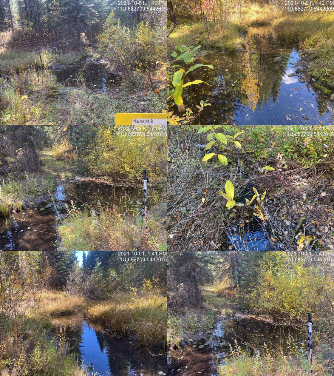 Comments: Two pipes (1m each) but one blocked with debris. Because height of outlets equivalent widths were added together for input to stream width ratio. Large beaver dams upstream between culvert and Lodgepole Lake. 15:37