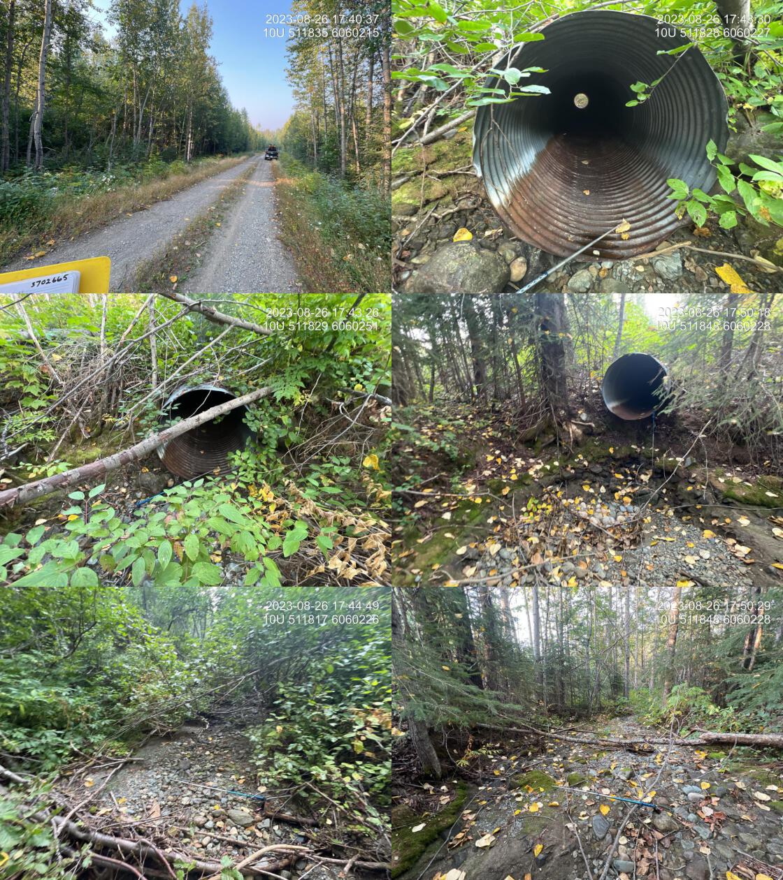 Comments: Very little flow and water at time of survey. Huge downed trees on downstream side. 13:41:31