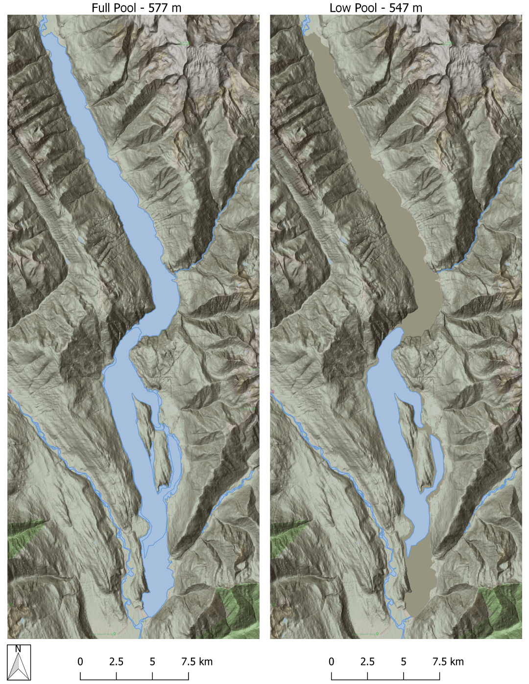 Data analysis, mapping and reporting to support large lake specialists on a multi-year synthesis report for a water use planning study. Reporting incorporated results and data from multiple water use planning projects in the Columbia Basin to explore impacts and mitigation strategies related to flow regulation and water impoundment in the Duncan River watershed. We built tools in R to automate the processing of hydroacoustic fish density outputs as well as associated water quality, zooplankton, and hydrometric data.